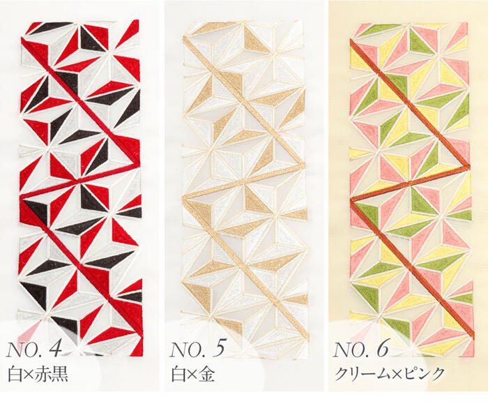 ⇒その他の振袖用半衿はこちら 商品情報 色 10色展開 柄 変わり麻の葉 素材 衿地:ポリエステル100%刺繍糸:レーヨン100%(金属糸使用の場合あり) 製造 日本製 ※実際の商品と同じ色合いに画像修正をしておりますが、環境やモニターの違いにより多少色の違いが出て来ることがあります、ご了承ください。