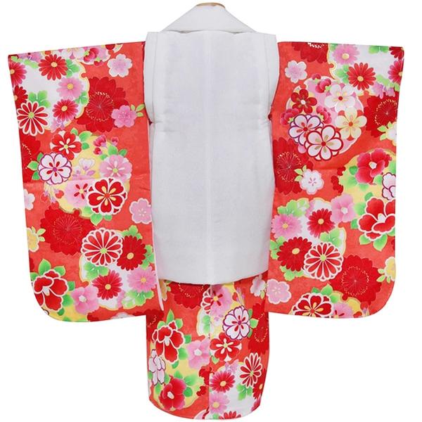 色 白系 朱赤系 特徴 ポリエステルのちりめん素材を使った三歳用被布・コートセットです。