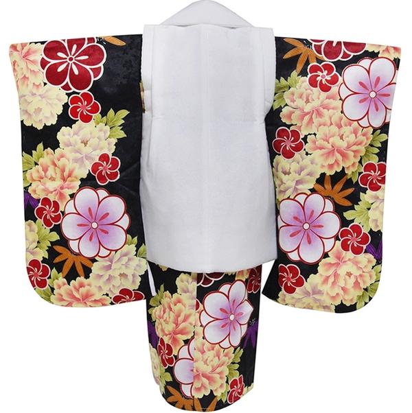 色 白系 黒系 特徴 ポリエステルのちりめん素材を使った三歳用被布・コートセットです。