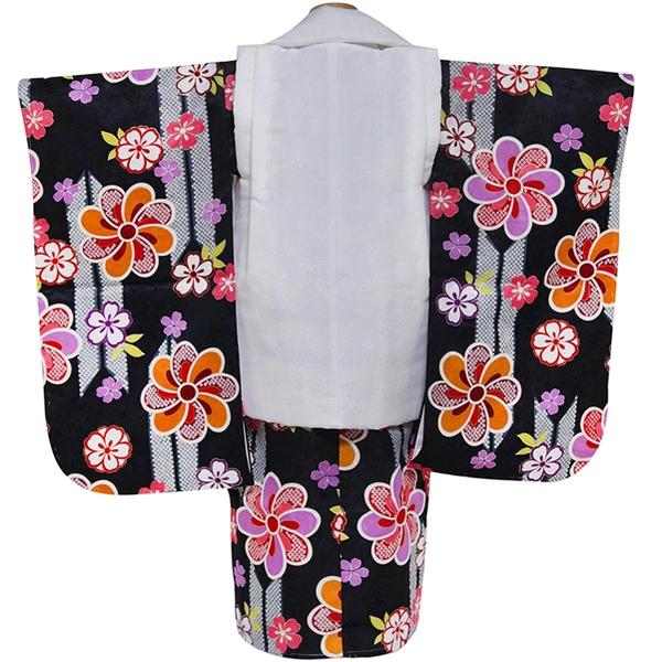 色 白系 黒系 特徴 ポリエステルのちりめん素材を使った三歳用被布・コートセットです。